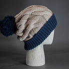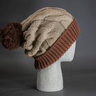 A Cable Knit, Extra Long Cuffed Blank Beanie W/ Oversized Pom.
