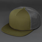 A Foam Front, Mesh Backed Blank Trucker Hat with a Flat Bill, & Classic Snapback.