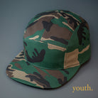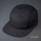 A YOUTH Sized, Light Weight, Cotton Twill, Blank 5 Panel Camp Hat With a Flat Bill, & Woven Nylon Strapback.