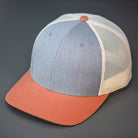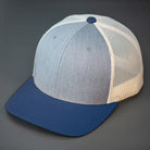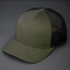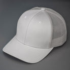 A Cotton Twill, Mesh Backed Blank Trucker Hat with a Pre Curved Bill, & Classic Snapback.